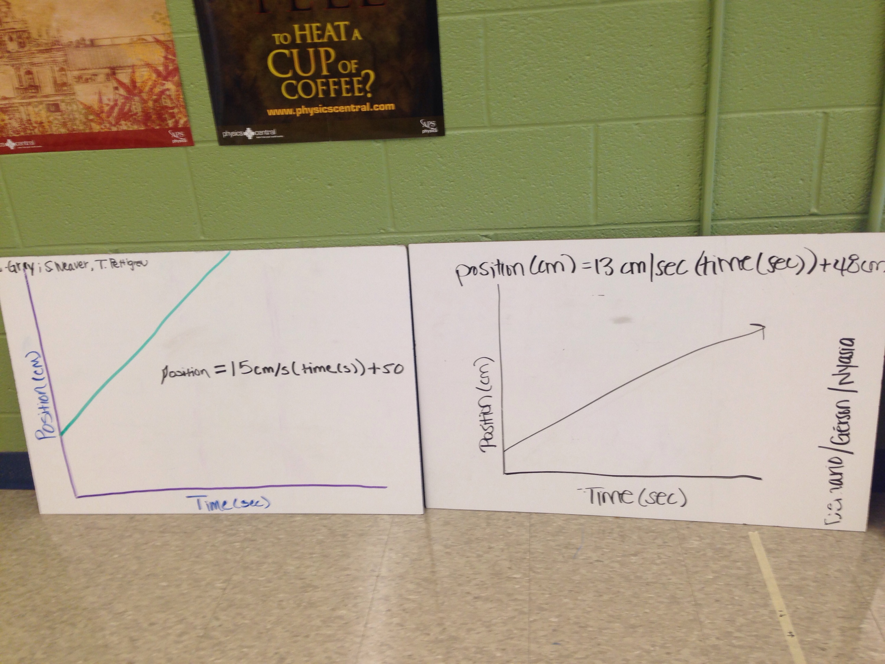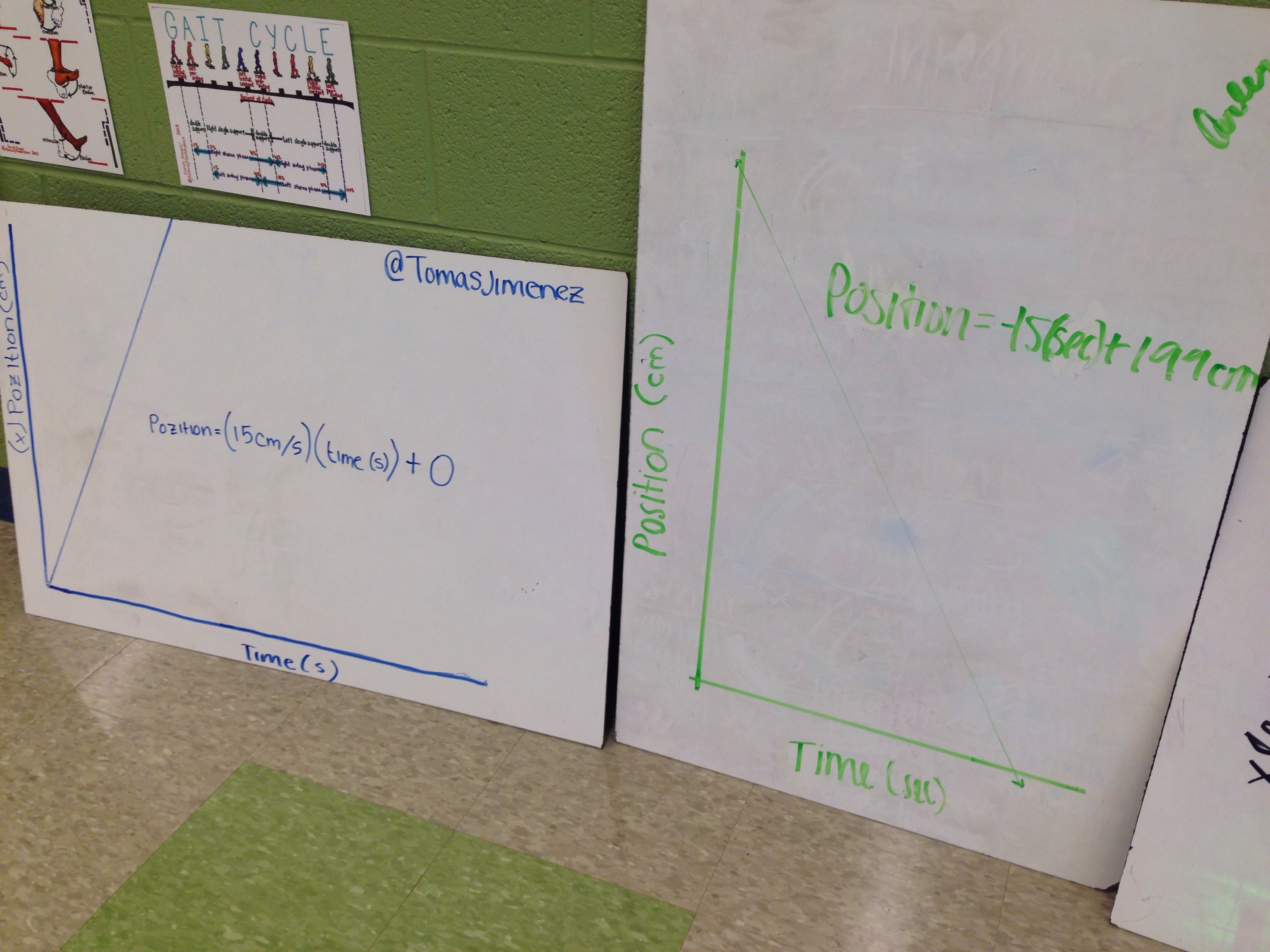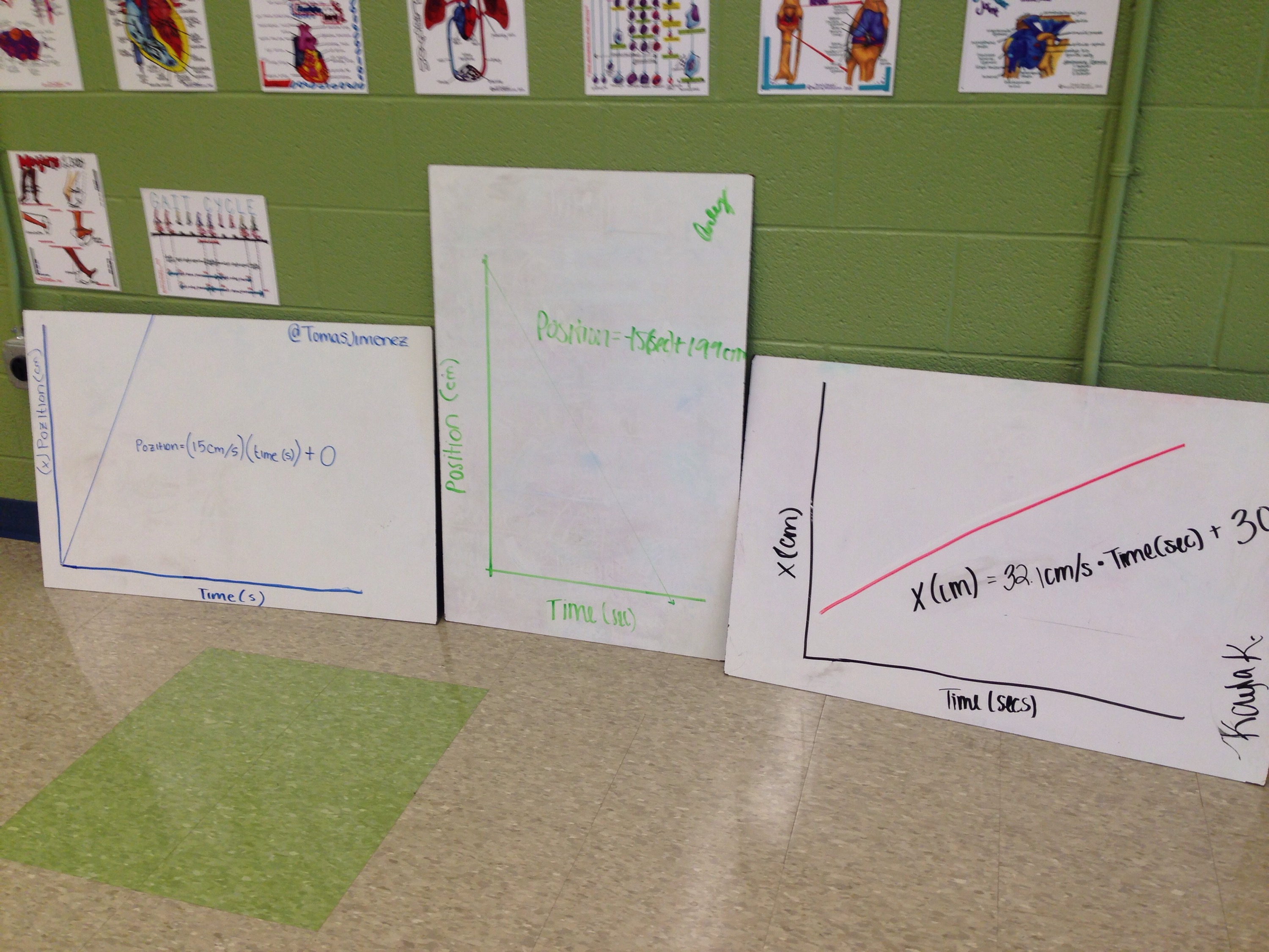 After collecting data, students graphed it on engineering paper and then whiteboards the results. Lots of aha moments during the board meeting!