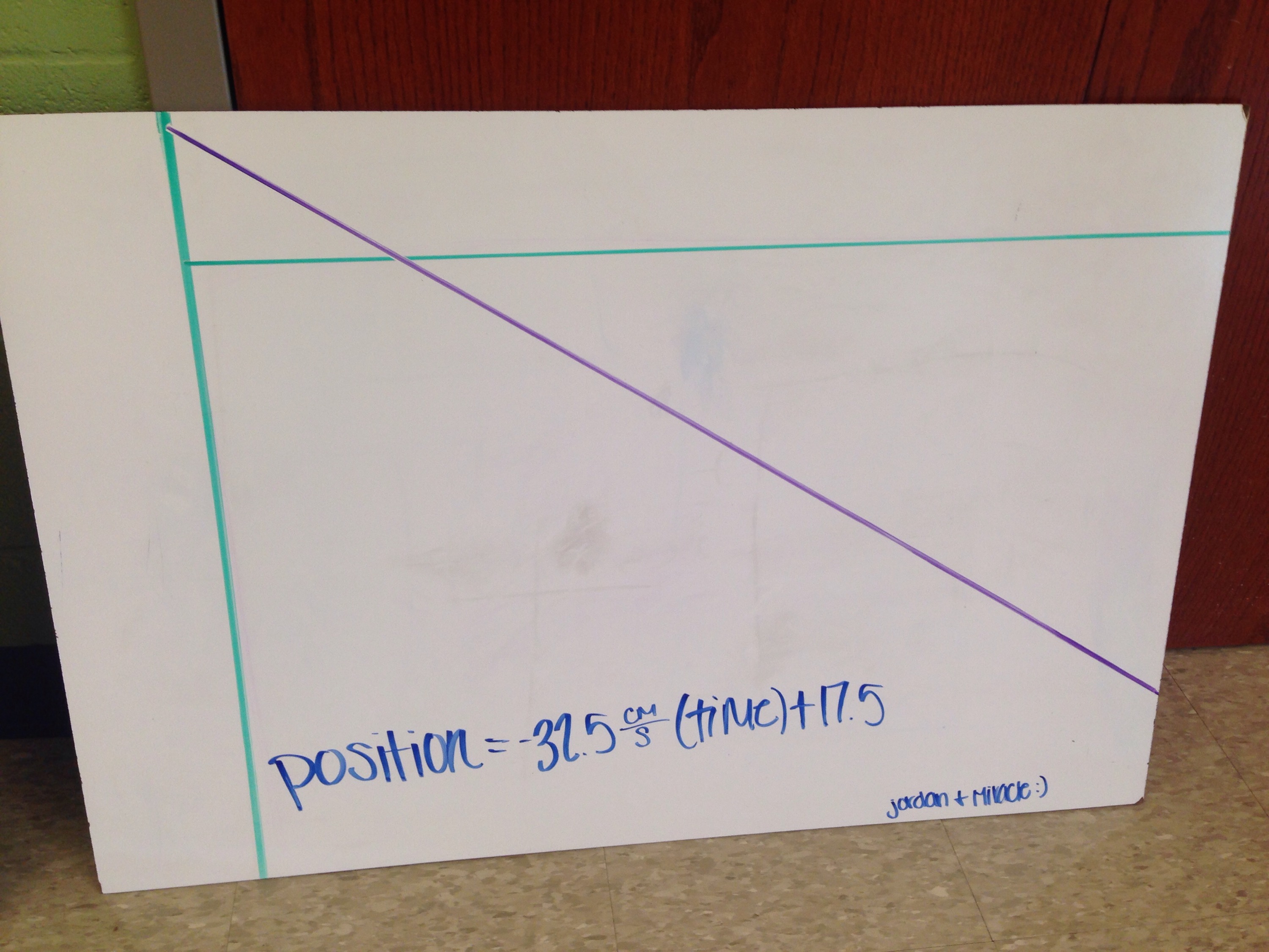 For the buggy paradigm lab, I wanted the graphs to all look different so we could compare and contrast. To get some negative positions, I made a common origin out of tape and staggered the tables. I also made at least one group run their buggy the opposite direction so we could figure out the meaning of a negative slope on the position-time graph.