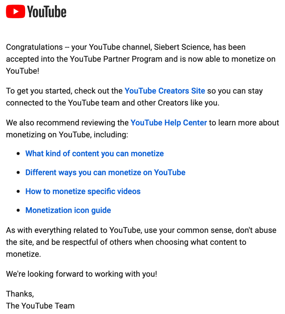 I also hit a particularly important milestone for any budding YouTuber: monetization!