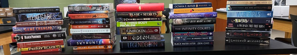 The other half of the semester, they’ll read one whole-class novel and one small-group “book club” book. My plan is to read Dawn by Octavia Butler as our whole-class novel. I think it’s brilliant, and Butler is an important author to know. So much to unpack in the book, with themes of colonialism, consent, and what it means to be human.