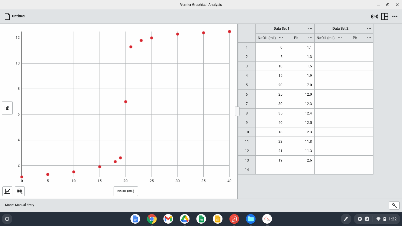 The basic premise is that they had all this titration data from a lab last week, but they lost the Vernier Graphical Analysis file and now have to create some fake data to fool their unsuspecting teacher.
