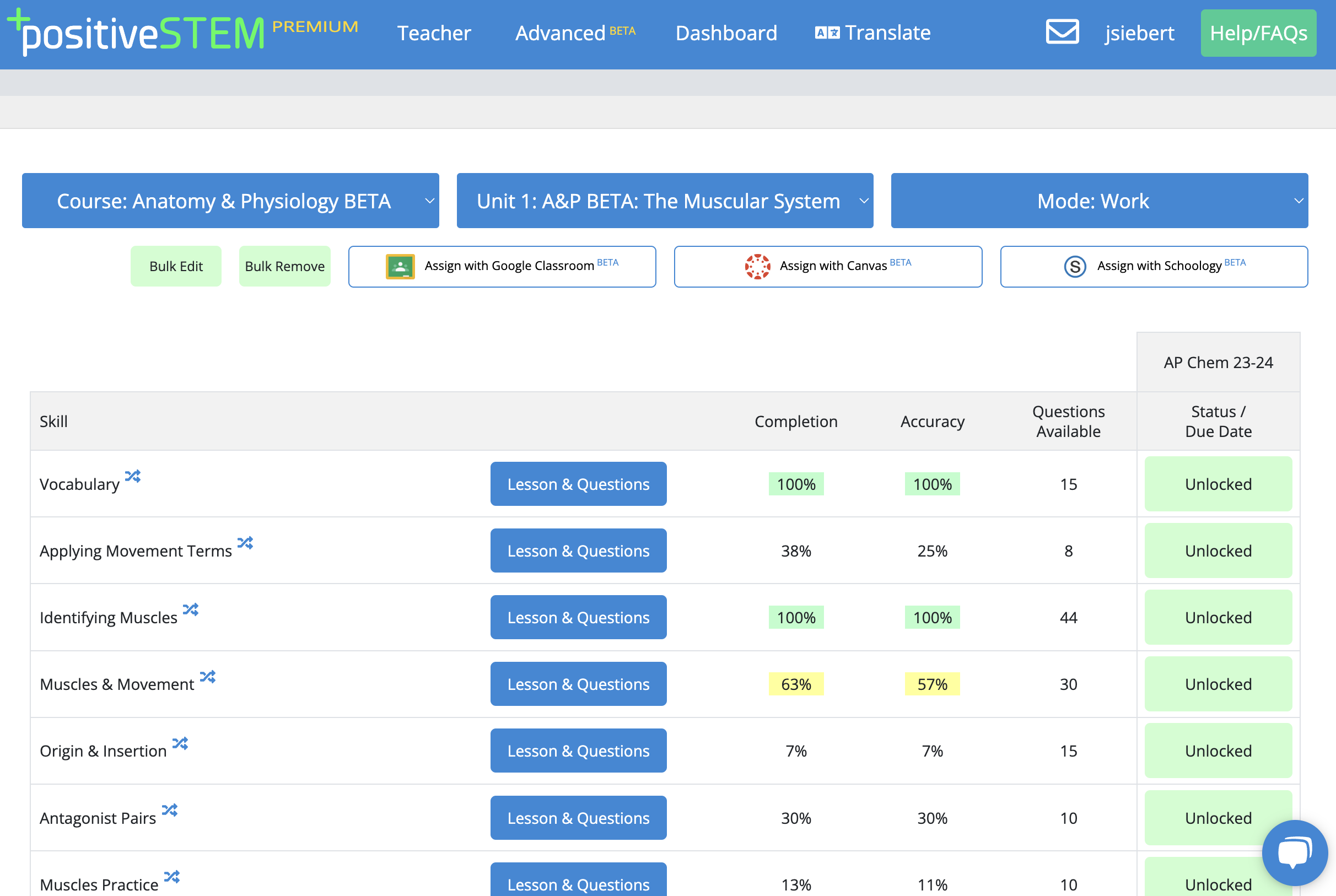 At the moment, we’re trying this unit out to get feedback and gauge interest in a full A&P course. If all goes well, we’ll create the rest of the units throughout the ’24-’25 school year and keep the course completely free during that time. Then after that (’25-’26 and beyond), it would be a paid subscription. (My school currently pays for the Positive Physics course, and I use the Positive Chemistry course with my AP classes, and I think the prices are reasonable. There’s also a pay-what-you-can option if your school doesn’t have the funds to pay for it.)