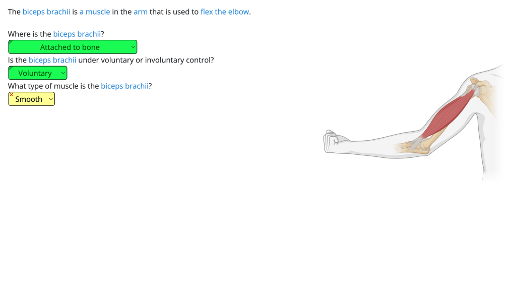Here is a webinar we did demonstrating the muscular system review unit. Check it out to see what how the interface works and what the questions look like.