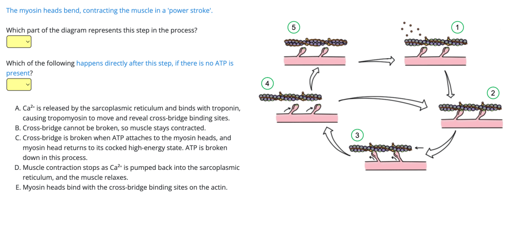Basically, we took my muscular system videos and created questions that go along with each video. The questions are divided into skills, some of which build on each other. (E.g., one skill might have students label the sliding filament model, and the next skill has them explaining the process.)